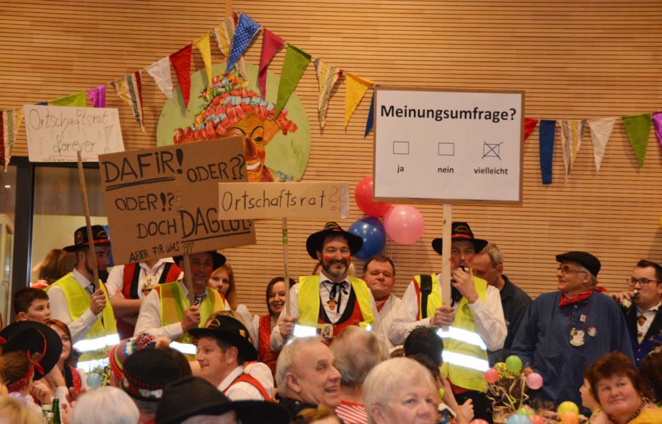 Schnapsbrenner Karl-Heinz und seine vier edlen Brände sorgten für Hoch genuss. Auch die Jugend, die Frauen und die Ortschaftsräte präsentierten sich in bester Narrenlaune.