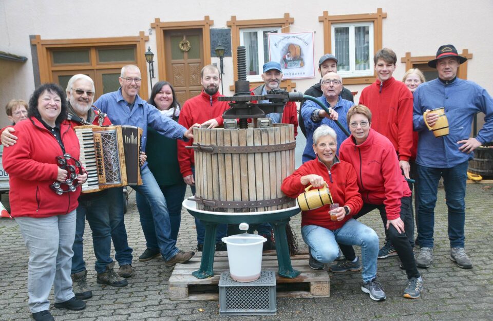 Die Neuhauser Narren sind eine eingeschworene und aktive Gemeinschaft. Beim Städtlemarkt am Samstag haben Gemeinschaftsführer Klaus Kienzle und seine aktiven Helfer zum Mostfest eingeladen. Bereits zum 12. Mal zeigten sie den Marktbesuchern, wie früher Most getrottet wurde und was man alles Feines aus Äpfeln machen kann.