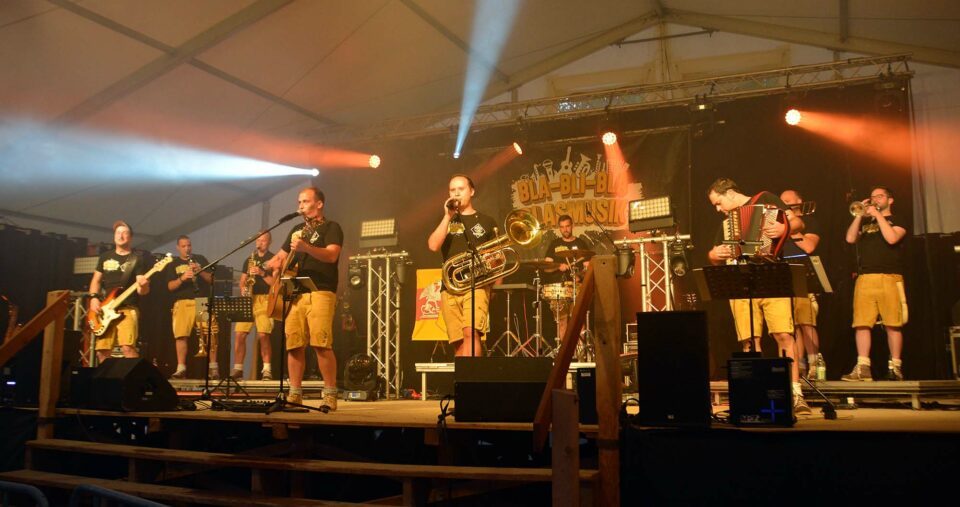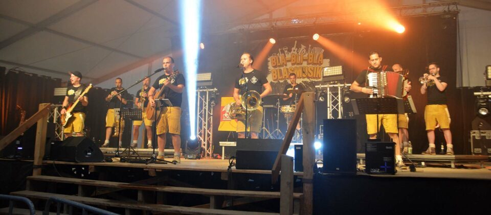 Am Samstagabend, 2. September 2023, ist Dirndl- und Lederhosenparty. Die Bla-Bli-Bla-Blasmusik und Stargast Julian Benz sorgen für Stimmung.