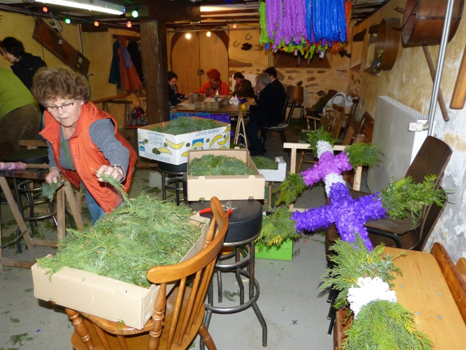 »Auf den Geruch freuen wir uns immer«, lachen die Frauen. Denn der unbeschreibliche Duft frisch geschnittenen Grüns umfängt jeden, der in der Zeit vor dem Palmsonntag den einstigen Lagerkeller der Unterentersbacher Familie Sum betritt.