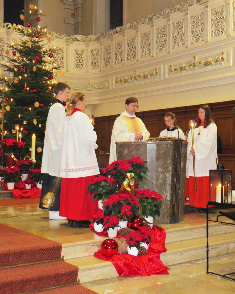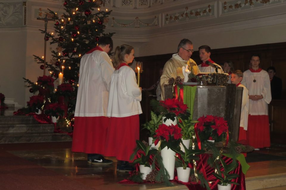 Die Christmette in der Pfarrkirche am Heiligabend ist für viele Gemeindemitglieder der Beginn von Weihnachten. Pfarrer Gerner zelebrierte einen feierlichen Festgottesdienst mit Gesang des Kirchenchores von der Orgelempore.
