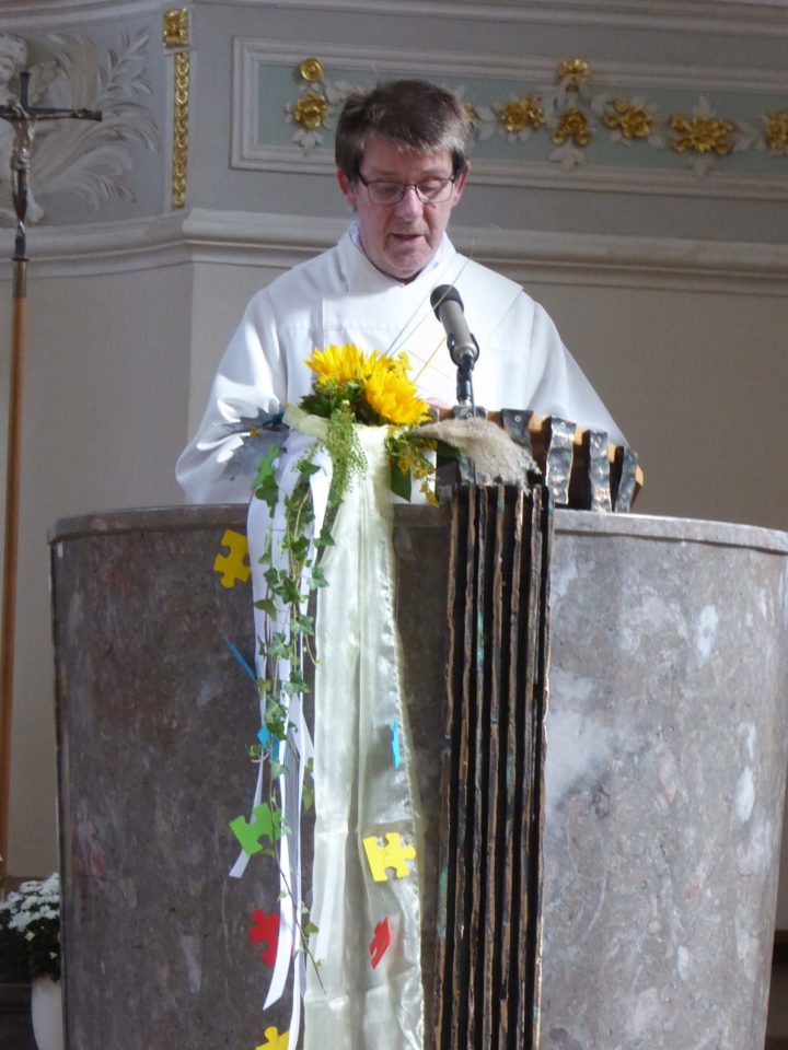 Zum Familiengottesdienst am Sonntagmorgen kamen zahlreiche Familien mit ihren Kindern. Die Musikgruppe Horizont war für die musikalische Gestaltung verantwortlich. Danach folgten viele Gemeindemitglieder der Einladung zum Mittagessen im Pfarrheim.