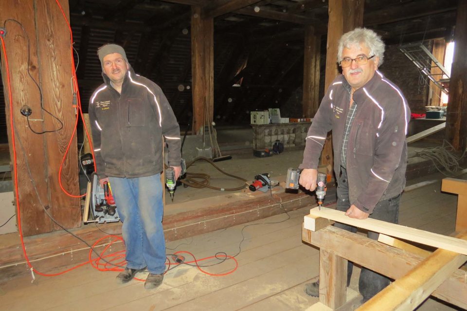 Auf dem Dachboden der Pfarrkirche hat die Zimmerei Klaus Lehmann, Oberharmersbach, mit der Instandsetzung der hölzernen Aufhängungen des Chorbogens begonnen.