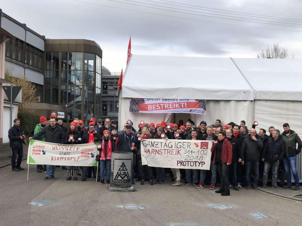 Von sechs Uhr heute früh bis sechs Uhr morgen steht die Produktion bei »Prototyp« still. Das Werk erlebt zum ersten Mal einen ganztägigen Warnstreik.