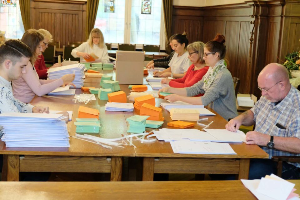 Emsiges Treiben ließ sich in den letzten Tagen im Ratssaal des Zeller Rathauses beobachten. Ein rundes Dutzend Helfer war damit beschäftigt, Stimmzettel für die Zustellung vorzubereiten. Am 26. Mai 2019 werden in Baden-Württemberg wieder Gemeinderäte, Ortschaftsräte und Kreisräte gewählt.