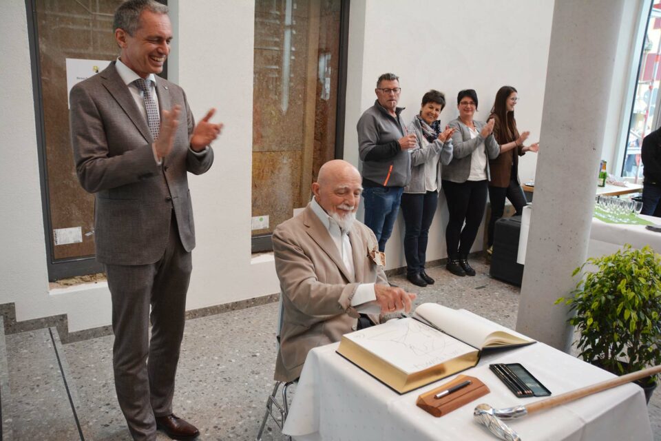 Viele Besucher wollten am Samstag das neue und auch nochmals das alte Rathaus sehen. Ehrengast beim »Tag der offenen Tür« war Maler, Grafiker und Bildhauer Markus Lüpertz, einer von Deutschlands bekanntesten Künstlern der Gegenwart. Lüpertz trug sich mit geschwinden Strichen in das goldene Buch der Stadt Zell ein, zeichnete eine Grafik seiner selbst, die mit […]