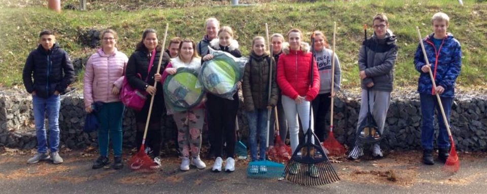Schülerinnen und Schüler der Hauptstufe des SBBZ Lernen in Zell a.H. übernehmen den Frühjahrsputz an der Gedenkstätte Vulkan. Sie sollen sich aktiv mit der Geschichte auseinandersetzen und durch ihr Engagement lernen.