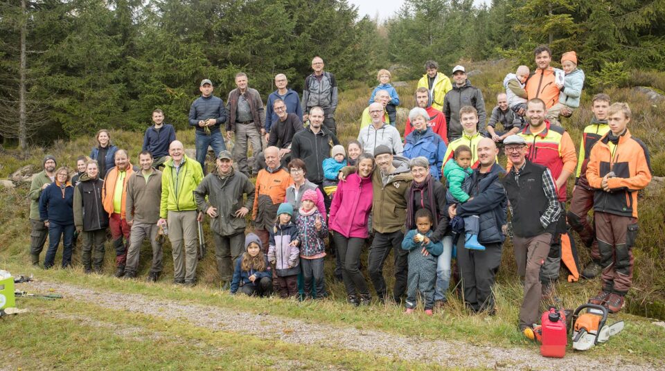Der Schwarzwaldverein Nordrach beteiligte sich mit 12 Freiwilligen am Habitatspflegetag, um den Lebensraum des Auerhuhns am Schliffkopf zu sichern.