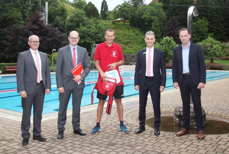Bei Unfällen zählt mitunter jede Sekunde. Im Oberharmersbacher Freibad ist dies jetzt mit einem von der Sparkasse Kinzigtal gesponserten Defibrillator möglich.
