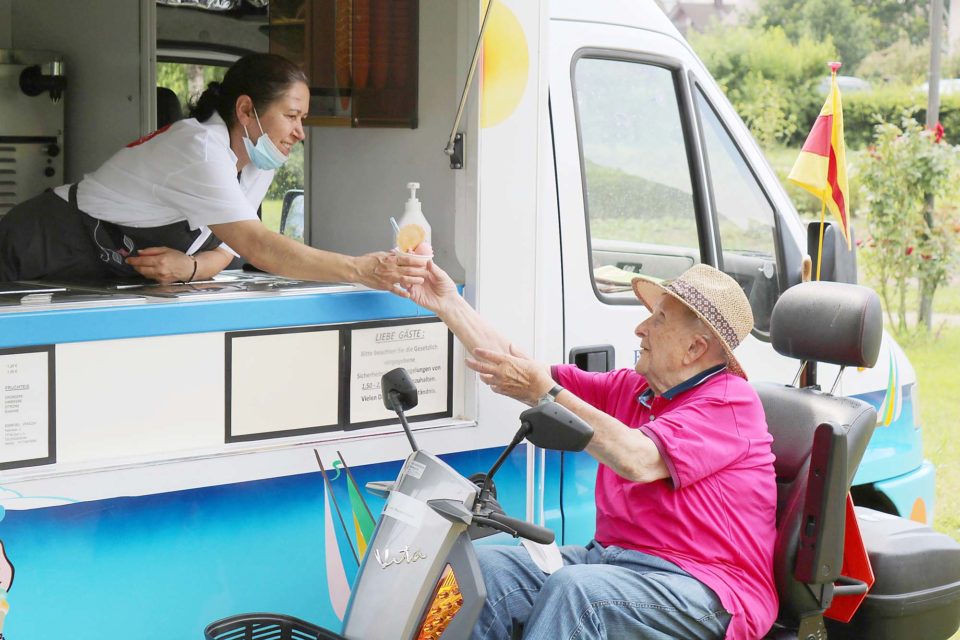 Die Physiopraxis Müller sorgte am Mittwoch für Abkühlung im Seniorenzentrum St. Gallus: Das Eismobil kam und brachte zart schmelzende Spezialitäten für Bewohner und Mitarbeiter.