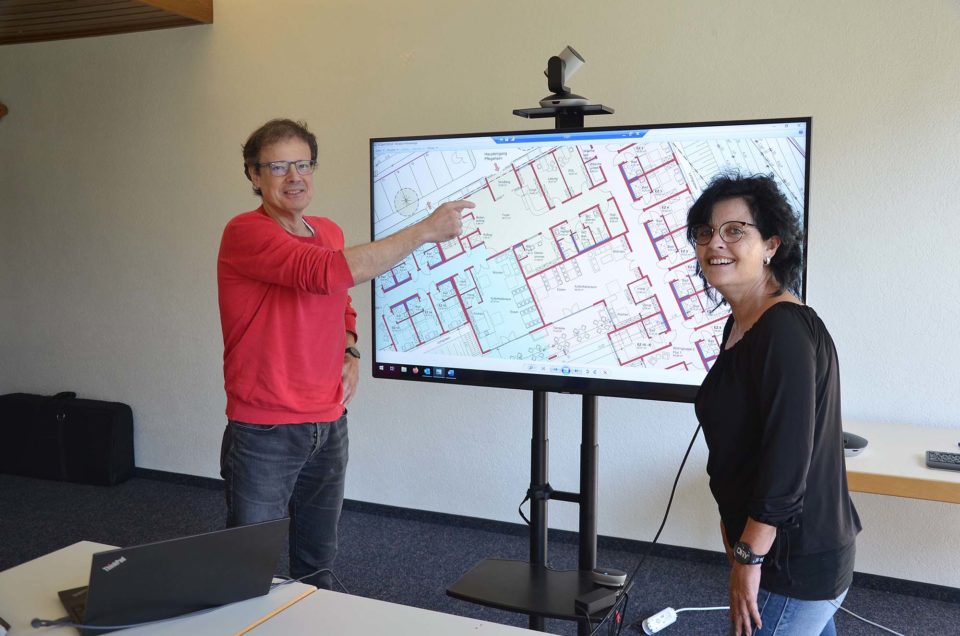 Die neue Errungenschaft kommt Bewohnern wie Mitarbeitern zugute: Das Altenpflegeheim St. Gallus verfügt nun über ein modernes Whiteboard. Die Anschaffung wurde durch Spenden der Volksbank und der Karl-Knauer-Stiftung finanziert.