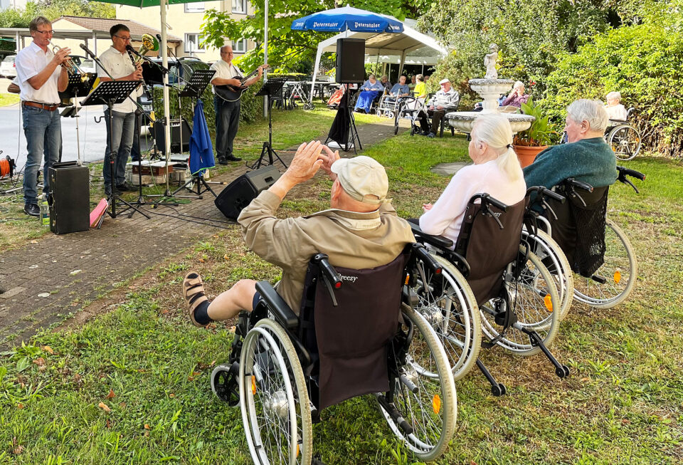 Über ein stimmungsvolles Platzkonzert der »Entersbacher Unterkrainer« haben sich alle Anwohner am Caritas Seniorenzentrum St. Gallus gefreut.