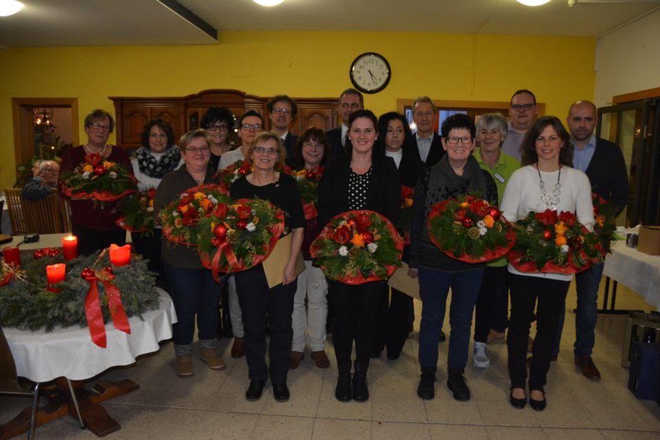 Bei der Weihnachtsfeier für die Mitarbeiter des St.-Gallus-Heims im Pfarrheim St. Symphorian konnte Heimleiter Michael Schlosser langjährige Betriebsjubilare ehren.