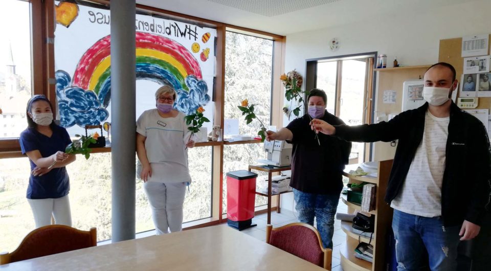 150 wunderbare Rosen für die »stillen Helden« des Altenpflegeheims St. Gallus in Zell – dieses schöne Zeichen der Solidarität setzte ein unbekannter Spender. Auch die »Aktion Mundschutz« erfreute dieser Tage die Mitarbeiter des Heimes.