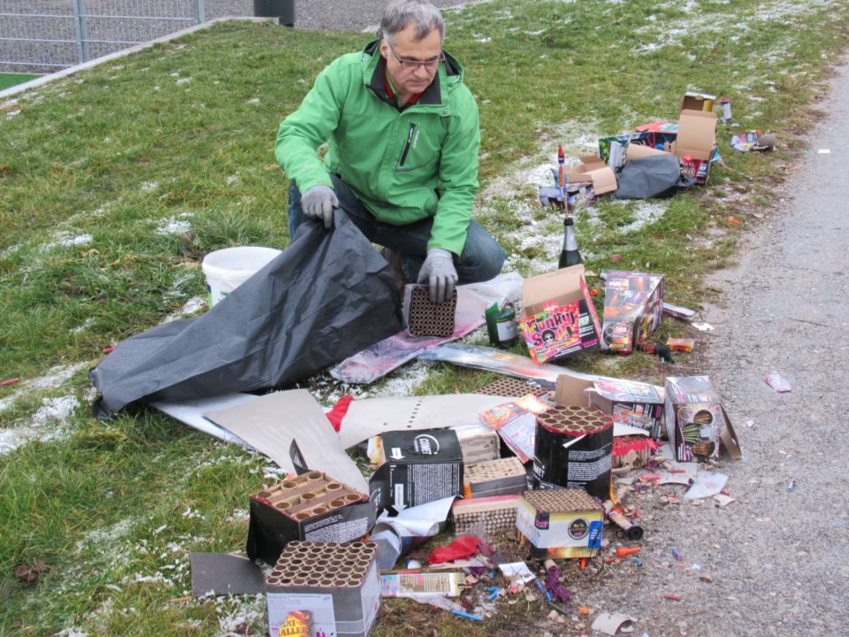 Brandflecken und messerscharfe Böllerplastikteile auf dem Kunstrasenplatz