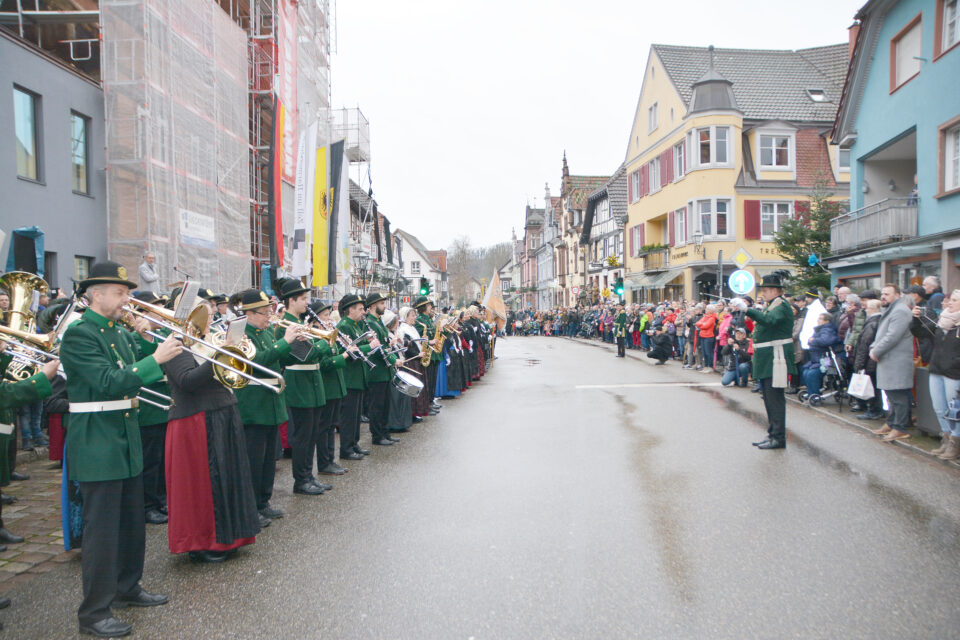 Bei strahlendem Sonnenschein konnte am Samstag Bürgermeister Günter Pfundstein gemeinsam mit der Freiwilligen Bürgerwehr, der Stadtkapelle und zahlreichen Ehrengästen das zurückliegende Jahr verabschieden. Mehrere Hundert Besucher bildeten eine große Kulisse für den Silvesteraufmarsch, der nun schon seit 39 Jahren stattfindet und – so Bürgermeister Pfundstein – »um den uns viele andere Gemeinden beneiden«.