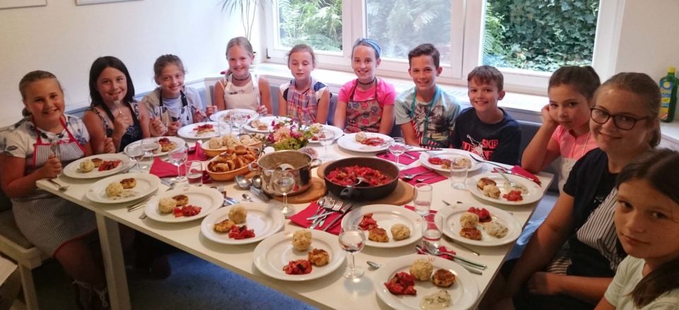 Im Rahmen des Sommerferienprogramms haben elf Kinder zusammen mit den Nordracher Landfrauen in der Lehrküche der Winkelwaldklinik »das perfekte österreichische Dinner« zubereitet.