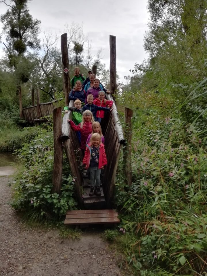 Trotz schlechter Wetterprognosen erkundeten drei Familien den Auenwildnispfad in Neuried.