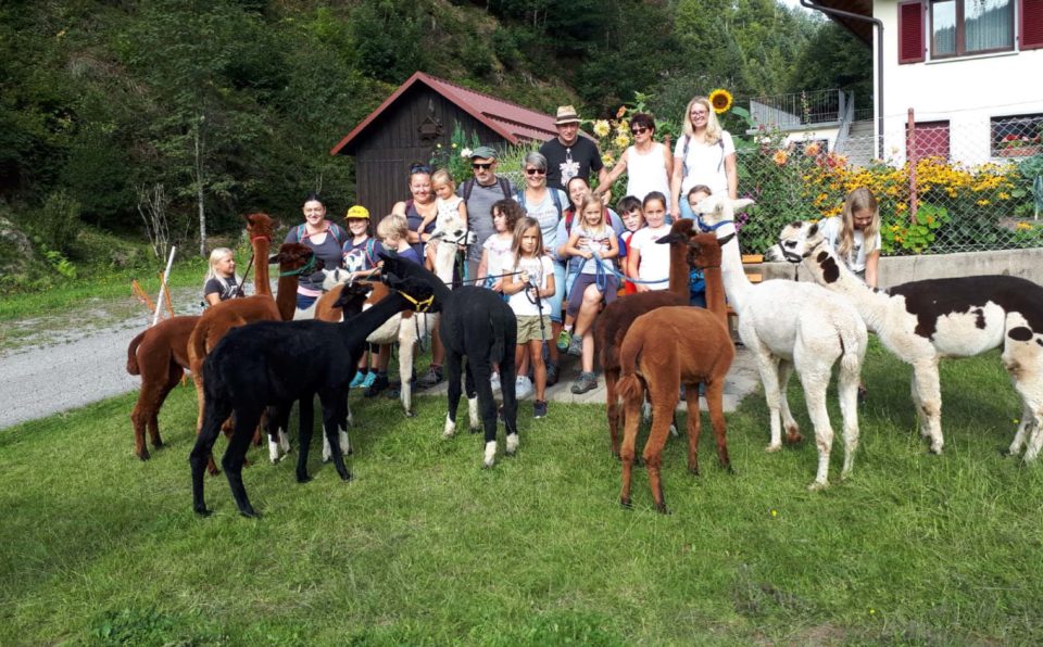 Bei herrlichem Sommerwetter konnten zur Alpakawanderung im Rahmen des Sommerferienprogramms auch dieses Jahr zehn Kinder zusammen mit ihren Eltern begrüßt werden.