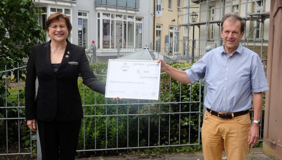 Freude bei der Sozialstation St. Raphael über eine großzügige Spende. Martina Neumaier, prowin-Direktion in Biberach, unterstützt den Umbau des historischen Engelbaus mit 500 Euro. Die Räume werden aktuell modernisiert, damit das Angebot an Tagespflege ausgeweitet werden kann.