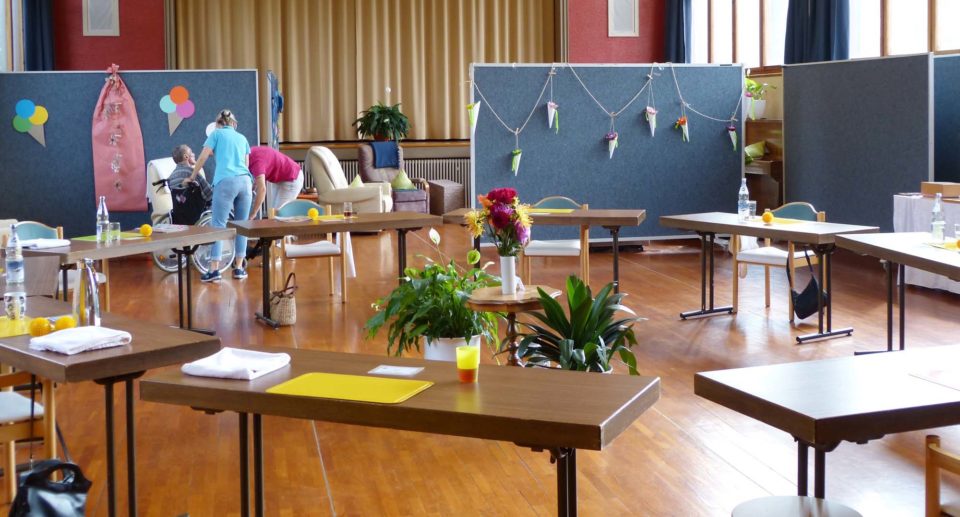 »Wir sind dem Kloster und der Stadt äußerst dankbar für die unkomplizierte Hilfe«, unterstreicht Marijke Heitzmann, Leiterin der Tagespflege der Sozialstation St. Raphael. Seit dem 18. Mai befindet sich diese übergangsweise in der Klosterhalle, über die Pfingstferien wich sie in das Kultur- und Vereinszentrum aus.