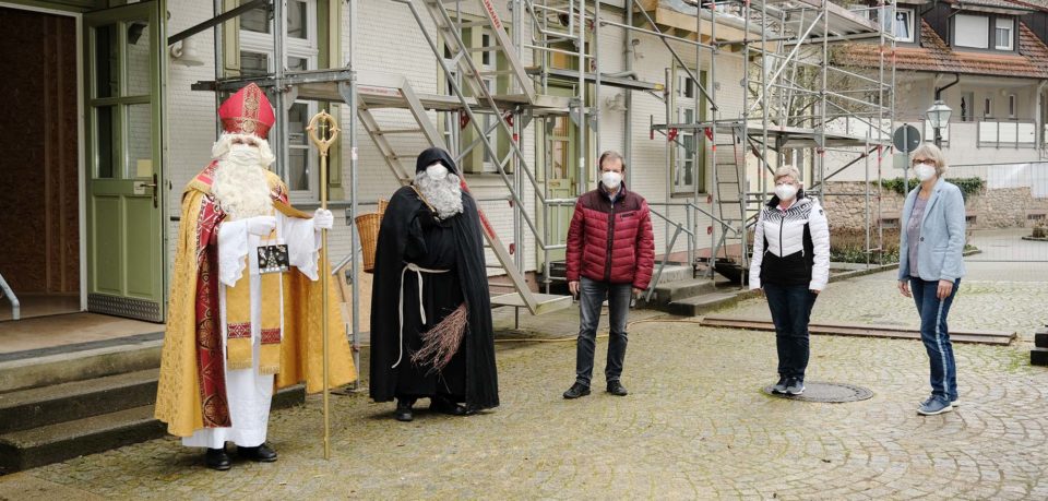 Am 23. Dezember kam der Nikolaus aus dem Harmersbachtal mit seinem Knecht Ruprecht zur Sozialstation. Sie hatten ein Geschenk dabei. Zur Auslieferung kam ein Scheck mit der Spendensumme von 465 Euro.