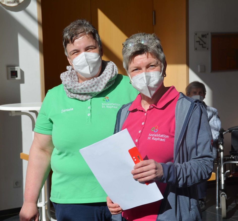 Gestern war ein Impfteam des Kreisimpfzentrums in der Oberen Fabrik zu Gast. Sein Auftrag: die Gäste der Tagespflege der Sozialstation St. Raphael impfen. Auch Menschen, die im Betreuten Wohnen in der Kirchstraße oder Gartenstraße leben, waren aufgerufen zu kommen.