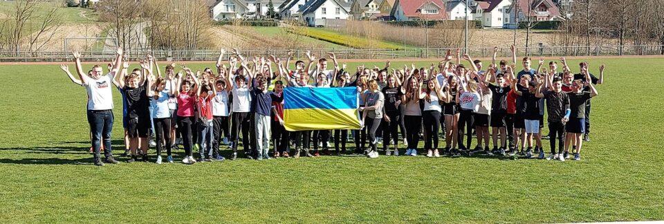Am Dienstag, 22. März 2022, laufen die Schülerinnen und Schüler für einen guten Zweck. Im Sportpark sammeln sie Runden – mit dem Ziel Spenden für die Ukraine-Hilfe zu sammeln. Das Motto: »Ich bin ein Ritter – Wir laufen für andere«.