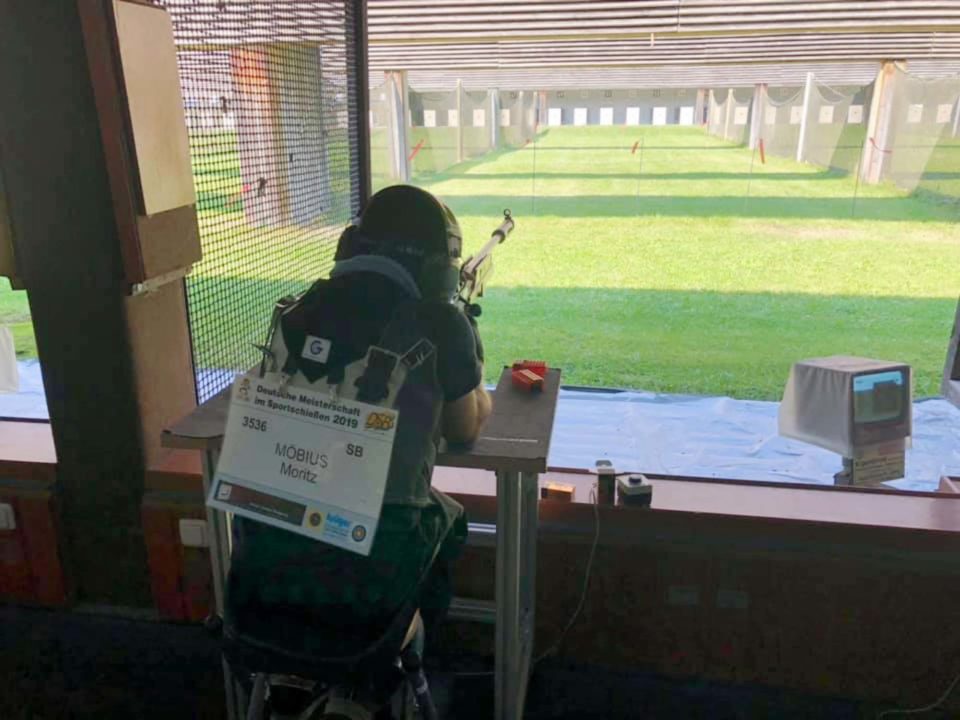 Der Paralympics-Teilnehmer von Tokio Moritz Möbius wird Deutscher Meister im KK-Liegendkampf SH1/AB2 mit Hilfsmittel.