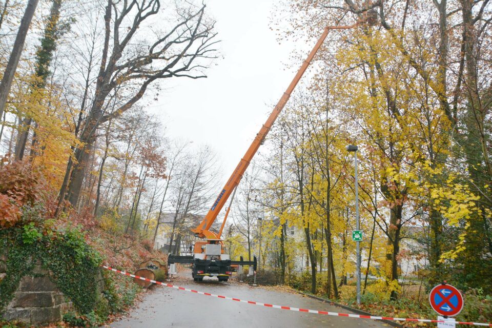 Der Betriebshof der Stadt Zell ist derzeit mit Baumpflegearbeiten im Stadtpark beschäftigt.