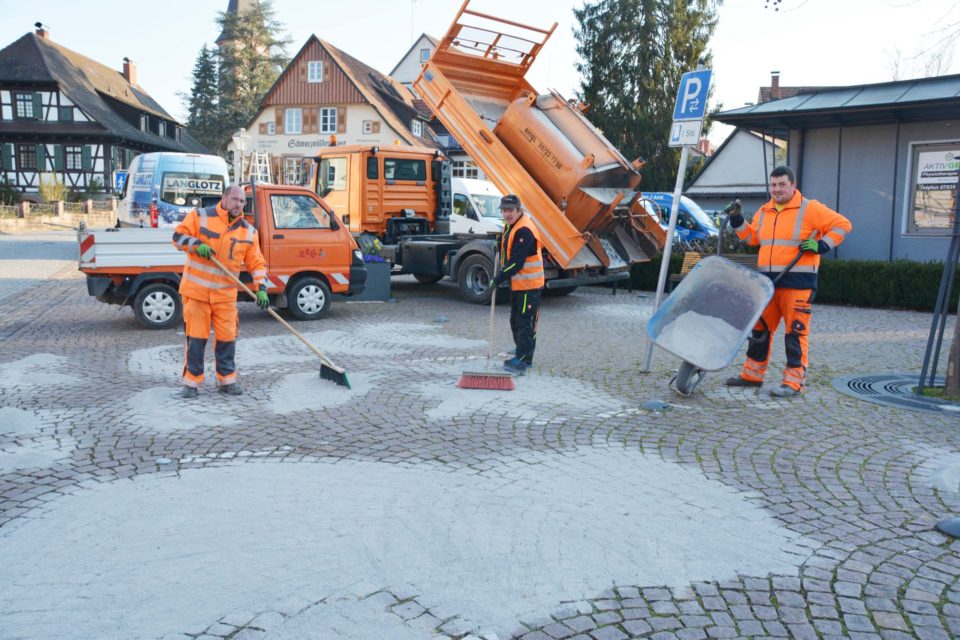 Die Mitarbeiter des Betriebshofs der Stadt Zell sind derzeit damit beschäftigt, die Natursteinbeläge in der Zeller Innenstadt neu zu verfugen. Insgesamt werden über 15 Tonnen Sand verteilt. Bis Ende der nächsten Woche sollen die Arbeiten abgeschlossen sein.