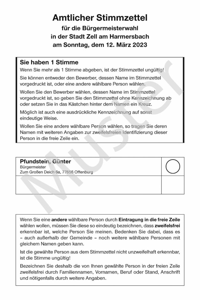 Am kommenden Sonntag, 12. März 2023, sind die Wählerinnen und Wähler der Stadt Zell bei der Bürgermeisterwahl dazu aufgerufen, das Stadtoberhaupt für die kommenden acht Jahre zu bestimmen. Mit Günter Pfundstein bewirbt sich nur der Amtsinhaber um das Amt. Für die Wahl hofft er auf eine gute Wahlbeteiligung und eine hohe Zustimmung. Am Sonntagabend ab […]