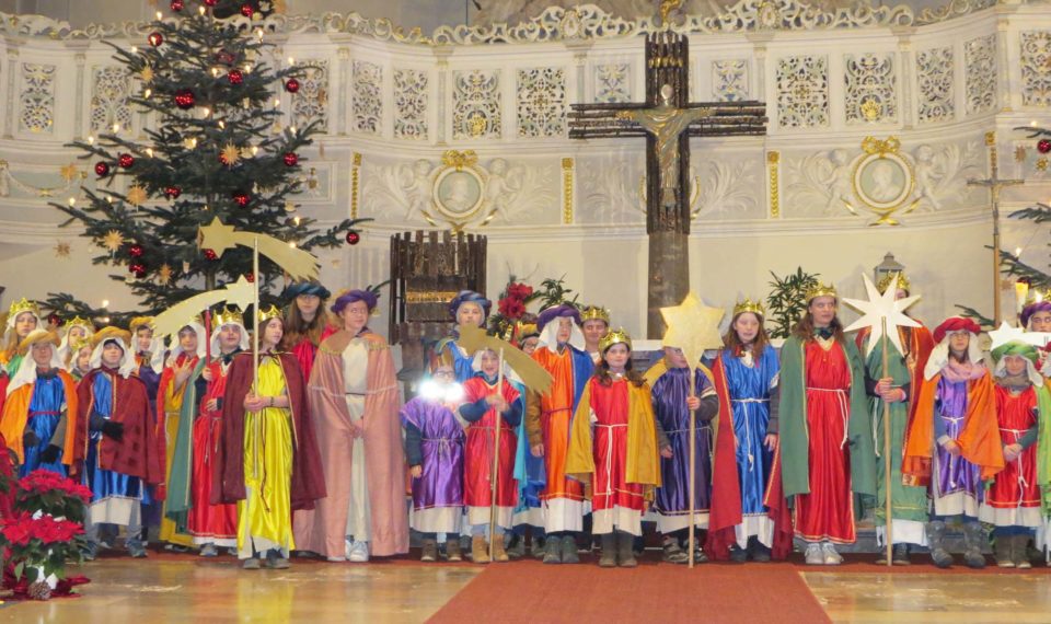 Am Feiertag »Heilige Drei Könige« haben die Sternsinger in den Gottesdiensten in der Zeller Pfarrkirche am Vormittag und in der Wallfahrtskirche am Abend mitgewirkt. Nach einem Anspiel, in dem sie ihre Gaben Gold, Weihrauch und Myrrhe vorstellten, sangen sie das traditionelle Sternsingerlied »Wir kommen daher aus dem Morgenland«.