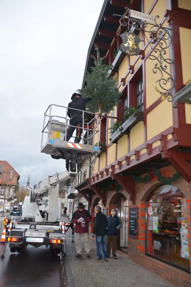 Ab dem 1. Adventswochenende soll das Zeller Städtle wieder in weihnachtlichem Lichterglanz erstrahlen. Nachdem der Betriebshof der Stadt Zell bereits die großen Tannenbäume aufgestellt hat, werden in der kommenden Woche nun noch die kleinen Bäumchen an den Hausfassenden installiert.
