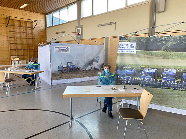 Am vergangenen Samstag fand in der Sport- und Festhalle in Biberach eine Impfaktion in Zusammenarbeit zwischen der Gemeinde Biberach und dem Impfbus-Team statt. Zur Unterstützung der Aktion war auch die Blaulichtfamilie Biberach, welche sich aus der DLRG, dem DRK, der Freiwilligen Feuerwehr und dem THW zusammensetzt, mit dabei.