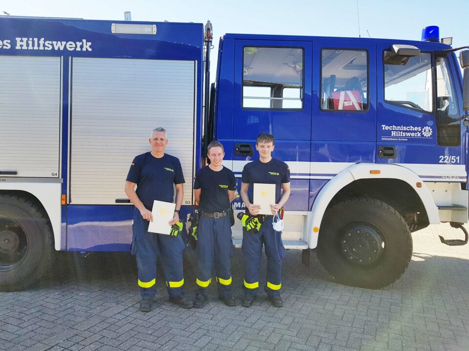Hans Jörg Sorychta, Jonas Allgaier und Benjamin Walter vom Ortsverband Biberach wurden für ihre außergewöhnlichen Dienste im Zivil- und Katastrophenschutz geehrt.