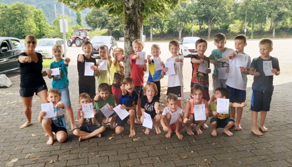 20 Kinder nahmen mit viel Spaß und guter Laune am Programmpunkt Selbstverteidigung und Koordinationstraining mit Musik im Rahmen des Biberstarken Ferienprogramms teil. Die Fröhlichkeit der Kinder motivierte auch die Trainerinnen Klaudia Isenmann (Selbstverteidigung) und Sina Gißler (Koordinationstraining mit Musik).