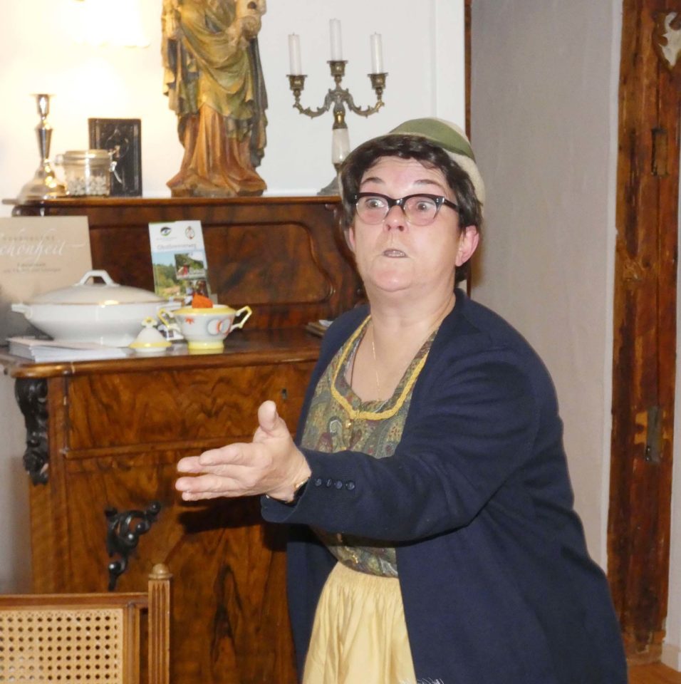 Die »Pfifferle Zäzel« hat einst auf einem armen Einsiedlerhof im Bechtenbach in Nordrach gelebt. Angela Boschert schlüpfte im Rahmen einer sagenhaften Kurzwanderung im Moospfaff-Monat Oktober in diese Rolle und nahm ihre Gäste zunächst auf eine Rundwanderung über den Ernsbach mit.