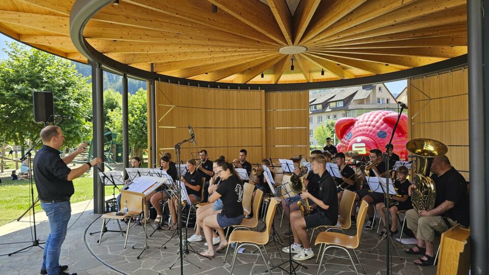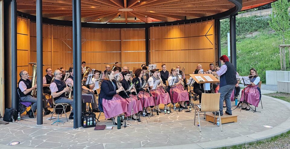 Feierabend-Konzert der Trachtenkapelle Nordrach bei Traumwetter: Am Freitagabend hat das erste Konzert der Konzertreihe „Wandern mit Blasmusik“ im Bürgerpark Nordrach stattgefunden.