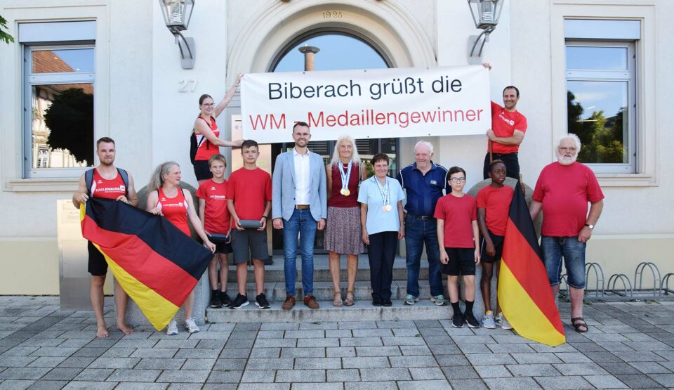 Großer Erfolg für Marita Echle vom TV Biberach. Gleich zwei Gold- und eine Silbermedaille brachte sie von der Leichtathletik-WM für Senioren im finnischen Tampere mit. Auch Erna Antritter durfte sich über eine Silber- und eine Bronzemedaille freuen. Am Donnerstag wurden die erfolgreichen Sportlerinnen bei einem Empfang im Rathaus geehrt.