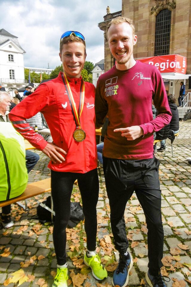 Marathon-Europameister Richard Ringer und Berglauf-Europameister Lukas Ehrle sind am Donnerstag im Sportpark.