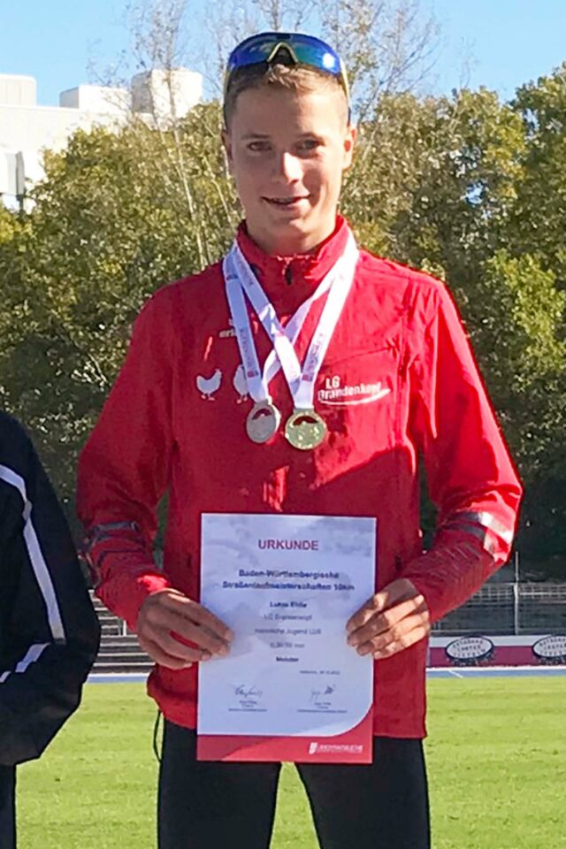 In Heilbronn fanden die BW-Meisterschaften im Straßenlauf über 10 Kilometer statt. Mit am Start war Lukas Ehrle von der LG Brandenkopf, der sich den Sieg in der Altersklasse U20 und die Silbermedaille in der Herrenklasse erkämpfte.