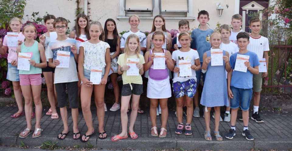 Bei brütender Hitze konnten die Übungsleiter am letzten Mittwoch vor den Sommerferien an 32 Schülerinnen und Schüler das Jugend-Sportabzeichen überreichen.
