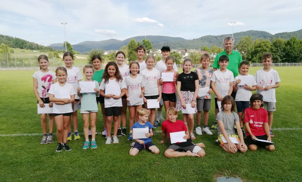 Am ersten Ferientag der Sommer ferien fand die Ehrung der Schüler für das Deutsche Sportabzeichen des Jahres 2021 statt. Man traf sich im Stadion Sportpark in Zell, wo die Ehrung von Sportabzeichen-Organi sator Willi Lehmann vom Turnverein Unterharmersbach durchgeführt wurde.