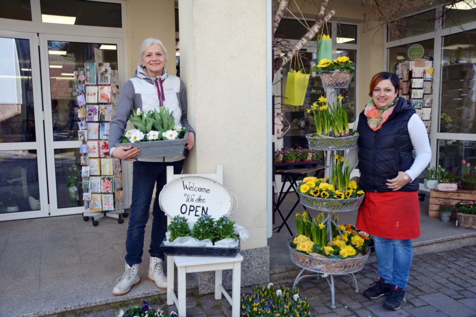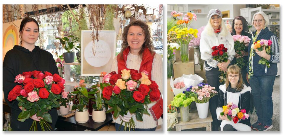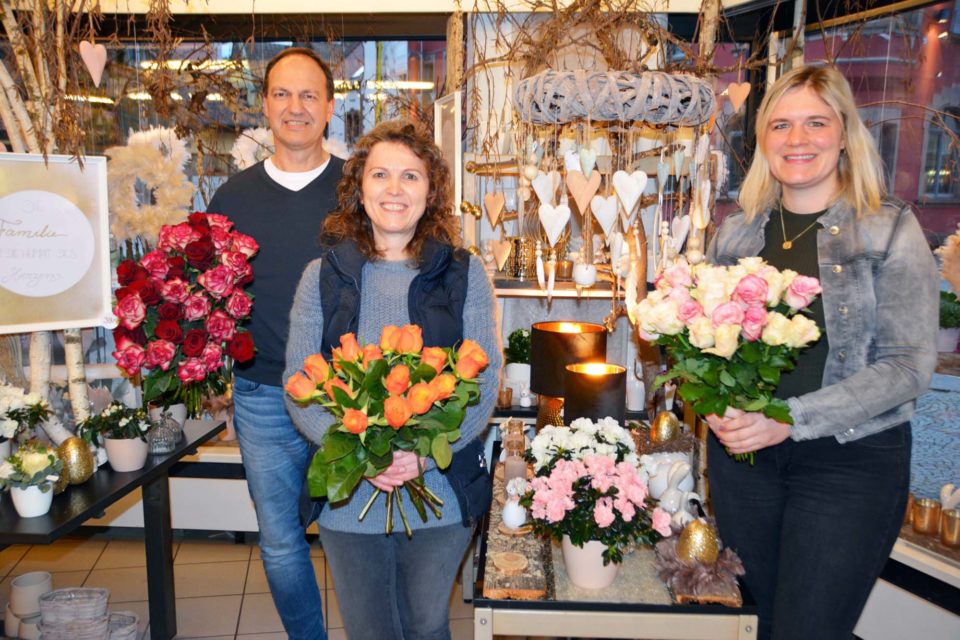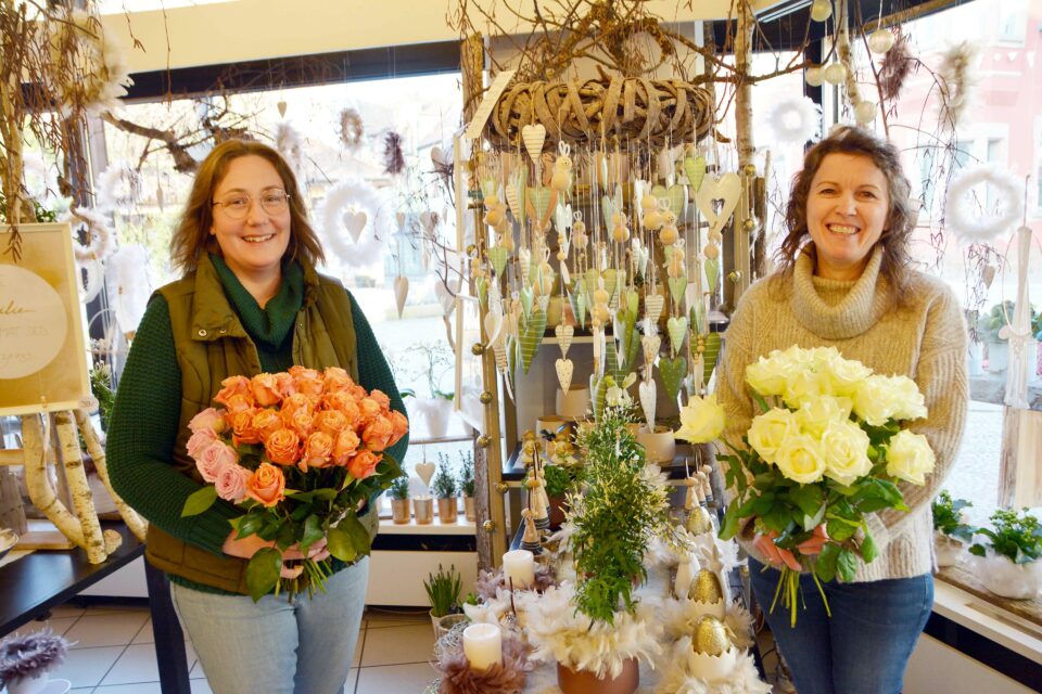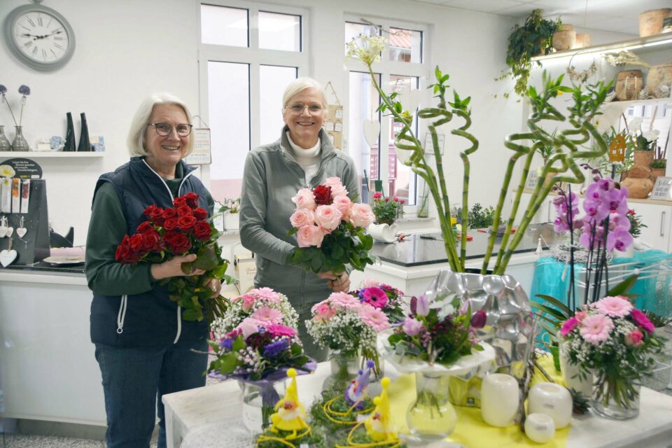 Inhaberin Claudia Harter (rechts) und Regina Fleig von Claudias Blumenparadies wecken die Vorfreude auf den Valentinstag.