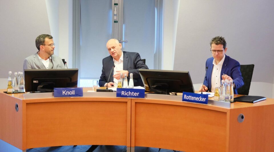 Moderator Markus Knoll und die Vorstände Peter Rottenecker und Reiner Richter haben über 600 Mitglieder der Volksbank Lahr im Europa-Park zur Mitgliederversammlung Süd begrüßt.