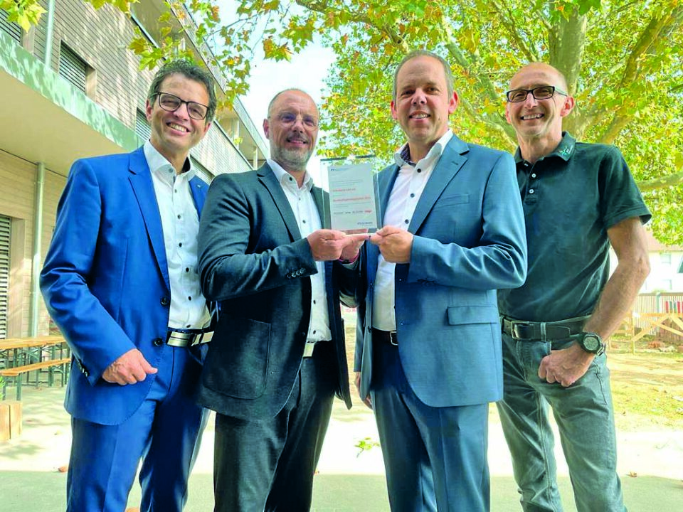 Neubau in der Stadt Herbolzheim weist in die Zukunft des Wohnens: nachhaltig, klimafreundlich und sozial. Die Volksbank Lahr wurde als „NachhaltigkeitsGestalter 2023“ in Baden-Württemberg ausgezeichnet.