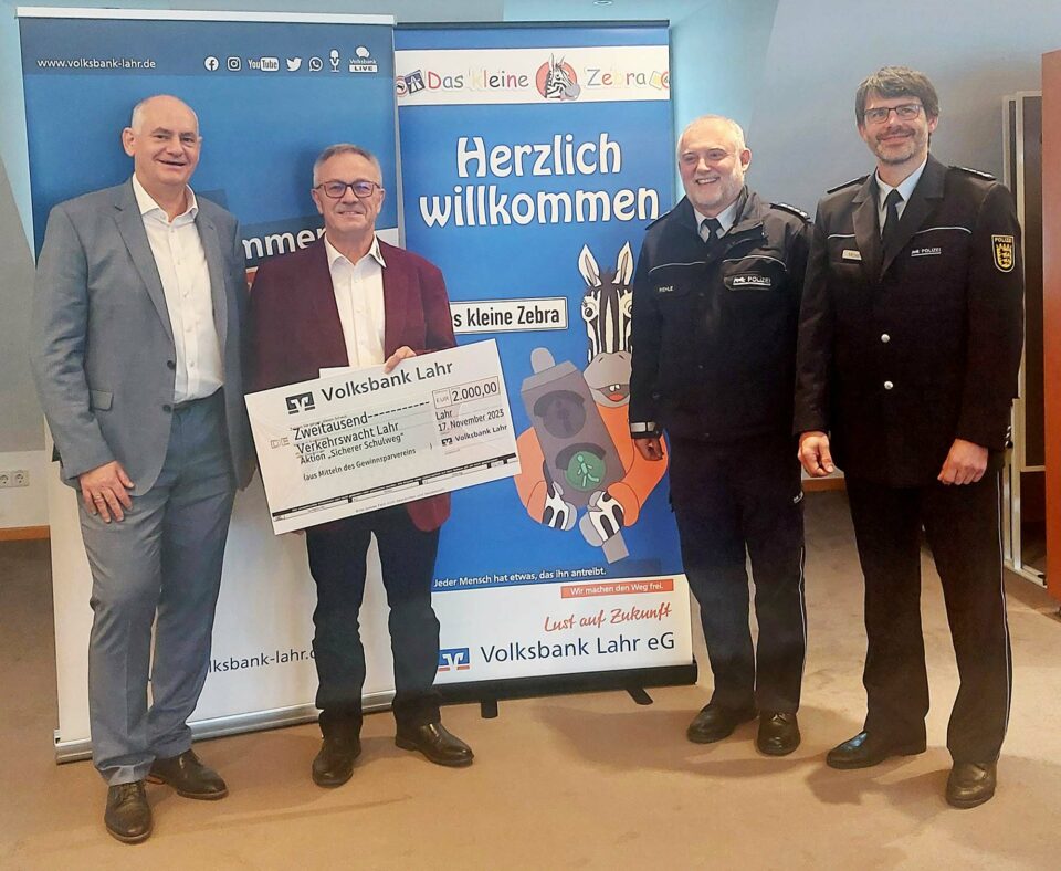 Volksbank Lahr fördert Verkehrsbildung für Kinder mit 7.000 Euro. Jeder Unfall ist einer zu viel.