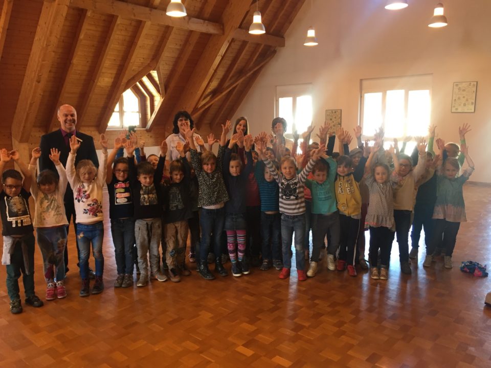 Die Freude bei den Schulanfängern des Ritter-von-Buß-Bildungszentrums war groß, als das kleine Zebra kürzlich zu Besuch in die Volksbank nach Zell a. H. kam. Gut gelaunt war das kleine Zebra und manchmal sogar etwas übermütig. So mussten die Kinder dem kleinen Zebra öfter erklären, dass es nicht einfach über die Straße rennen darf.