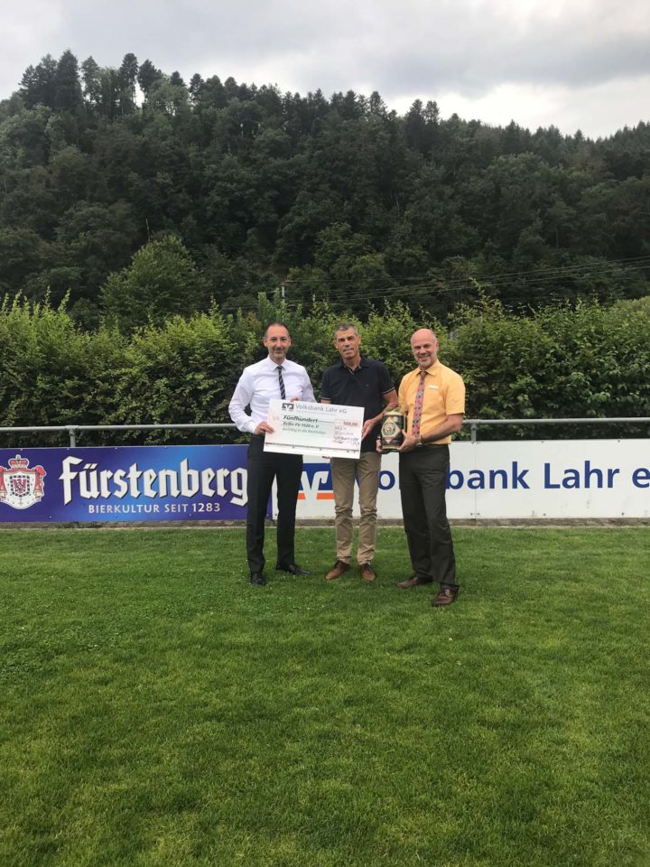 Anfang Juni haben die Zeller Fußballer die Meisterschaft gewonnen und den Aufstieg in die Bezirksliga geschafft. Den Aufstieg nahm die Volksbank Lahr zum Anlass, die Förderung des Sports im Zeller FV mit einer Spende über 500 Euro zu unterstützen. Zur Übergabe des dicken Spendenschecks trafen sich der 1. Vorsitzende des ZFV Christian Pristl (Mitte), Regionalmarkt-Leiter […]